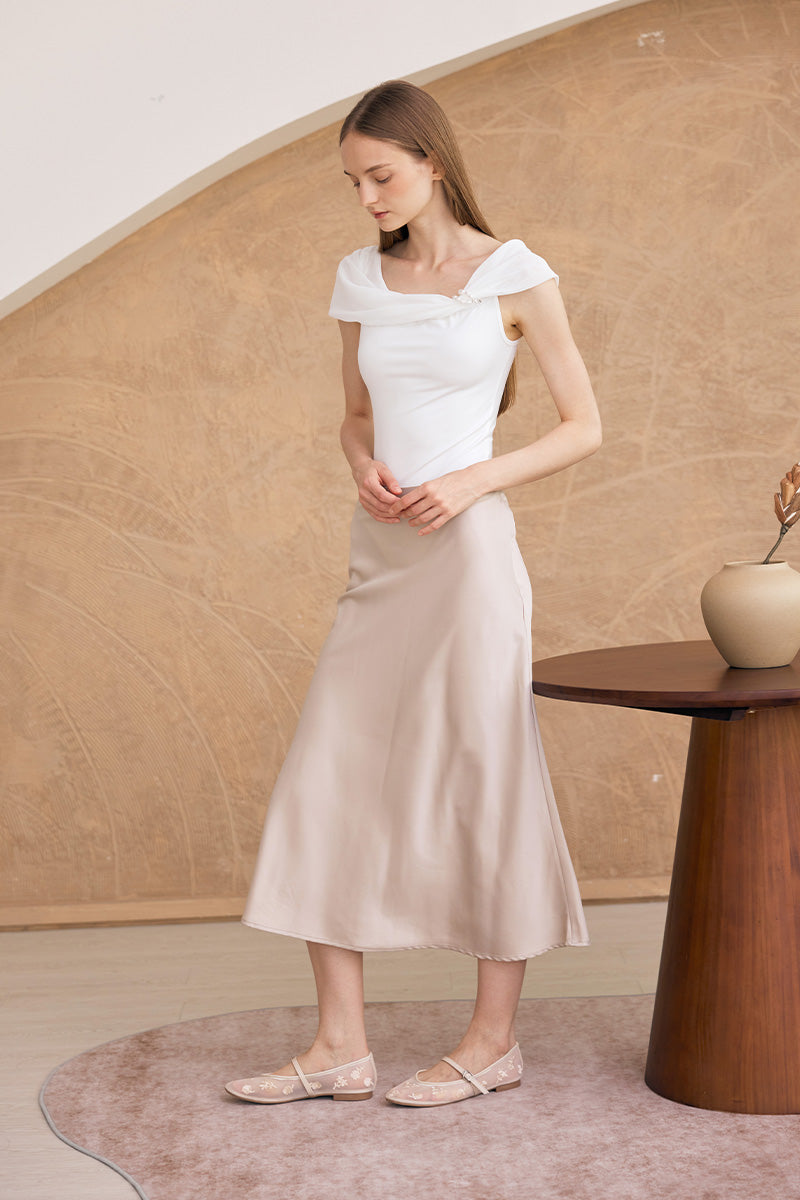 Aster Floral Mesh Maryjane Flats in Cream