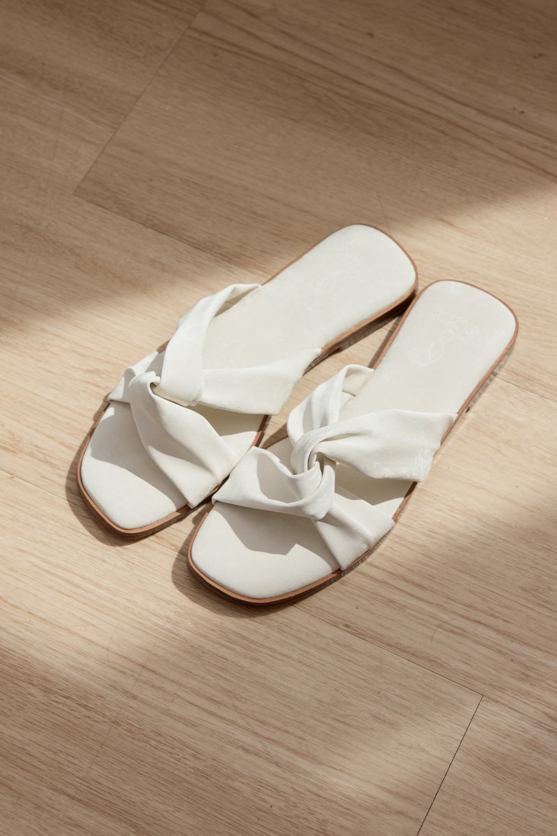 Jessa Cloud Sliders in Pearl Waterproof Satin