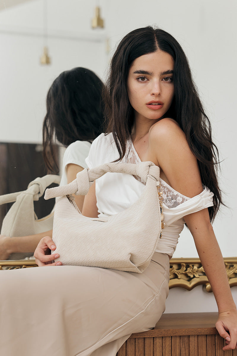 Kyoto Knotted Weaved Shoulder Bag in Cream