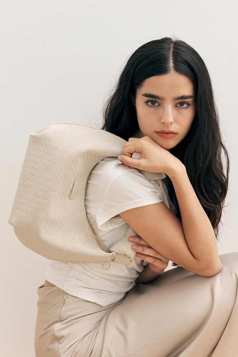Effortlessly chic and versatile, the Kyoto Knotted Weaved Shoulder Bag is designed with a signature knotted handle and a timeless woven texture in our crowd favourite Waterproof Suede material. Spacious yet refined, it pairs perfectly with both casual and dressier looks. Available in neutral shades to complement any wardrobe, this piece is the perfect balance of modern design and everyday function.