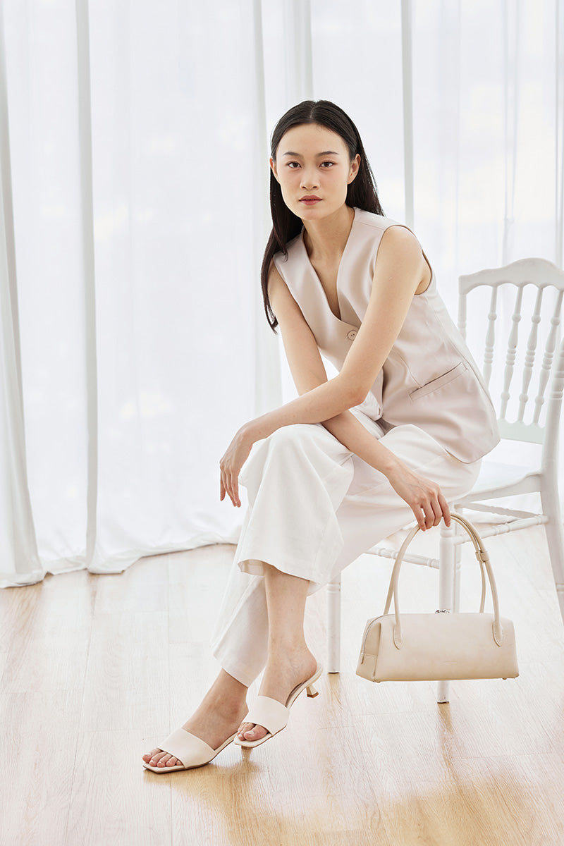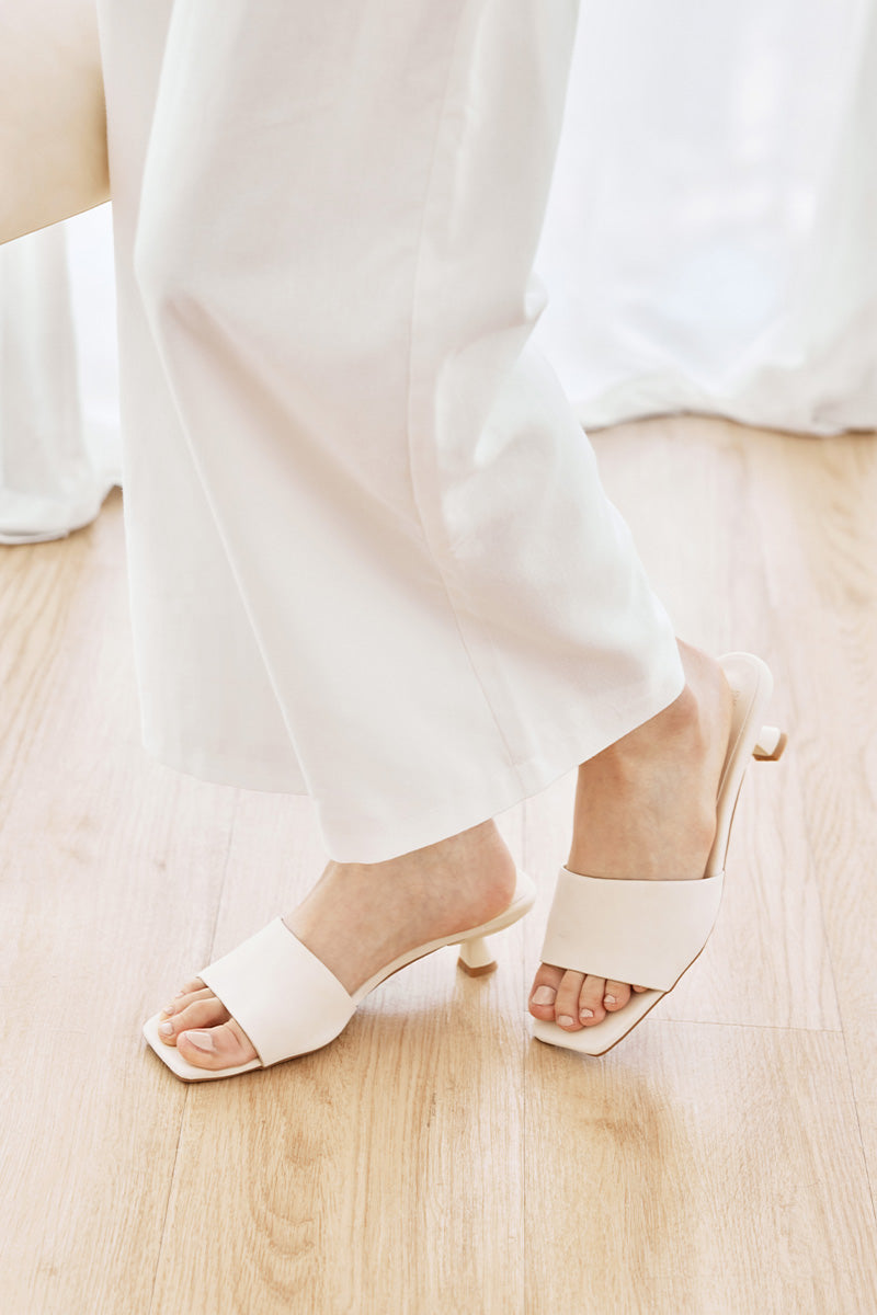 Olessia Strap-over Kitten Heel in Cream Waterproof Suede