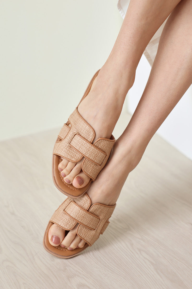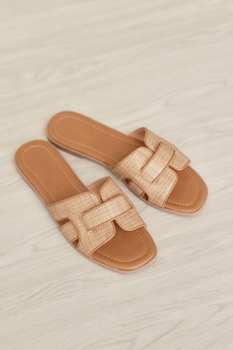 Rayla Interlocking Sliders in Waterproof Rattan Camel