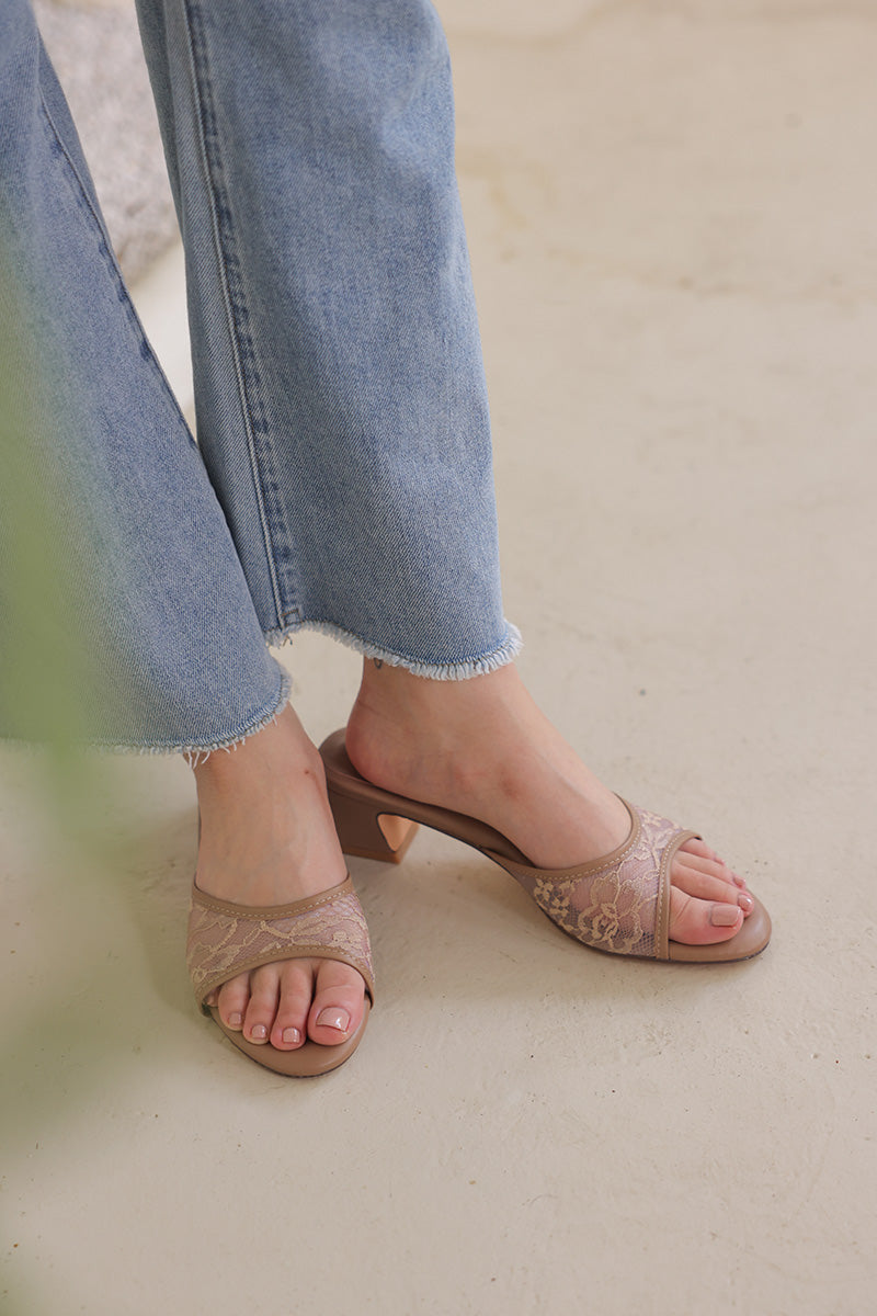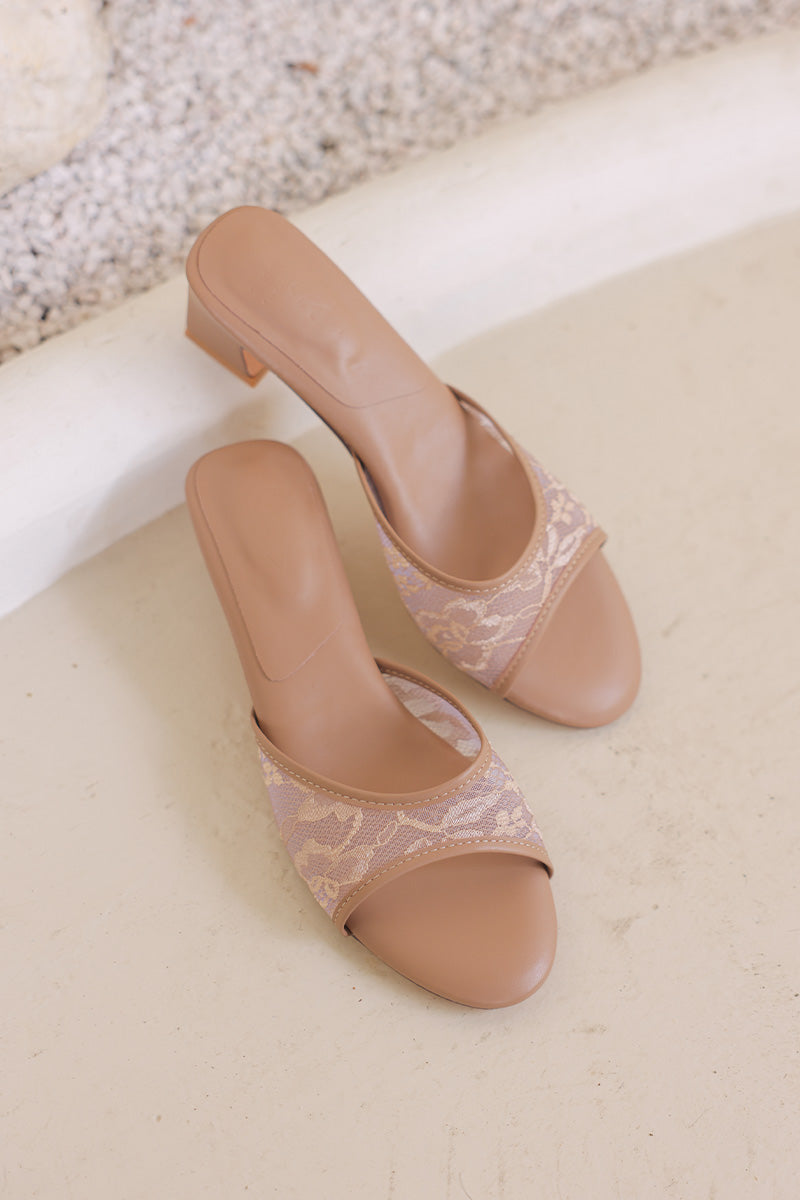 [PRE-ORDER] Zaria Lace Mesh Cloud Heels in Brown