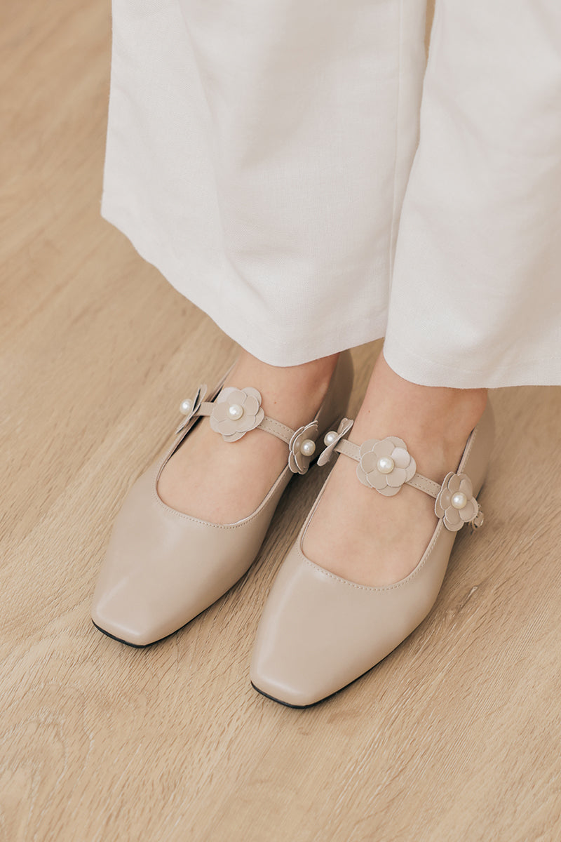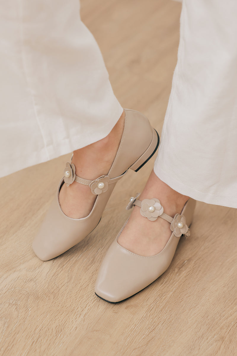 Sorrel Floral Cut out Maryjane Flats in Taupe