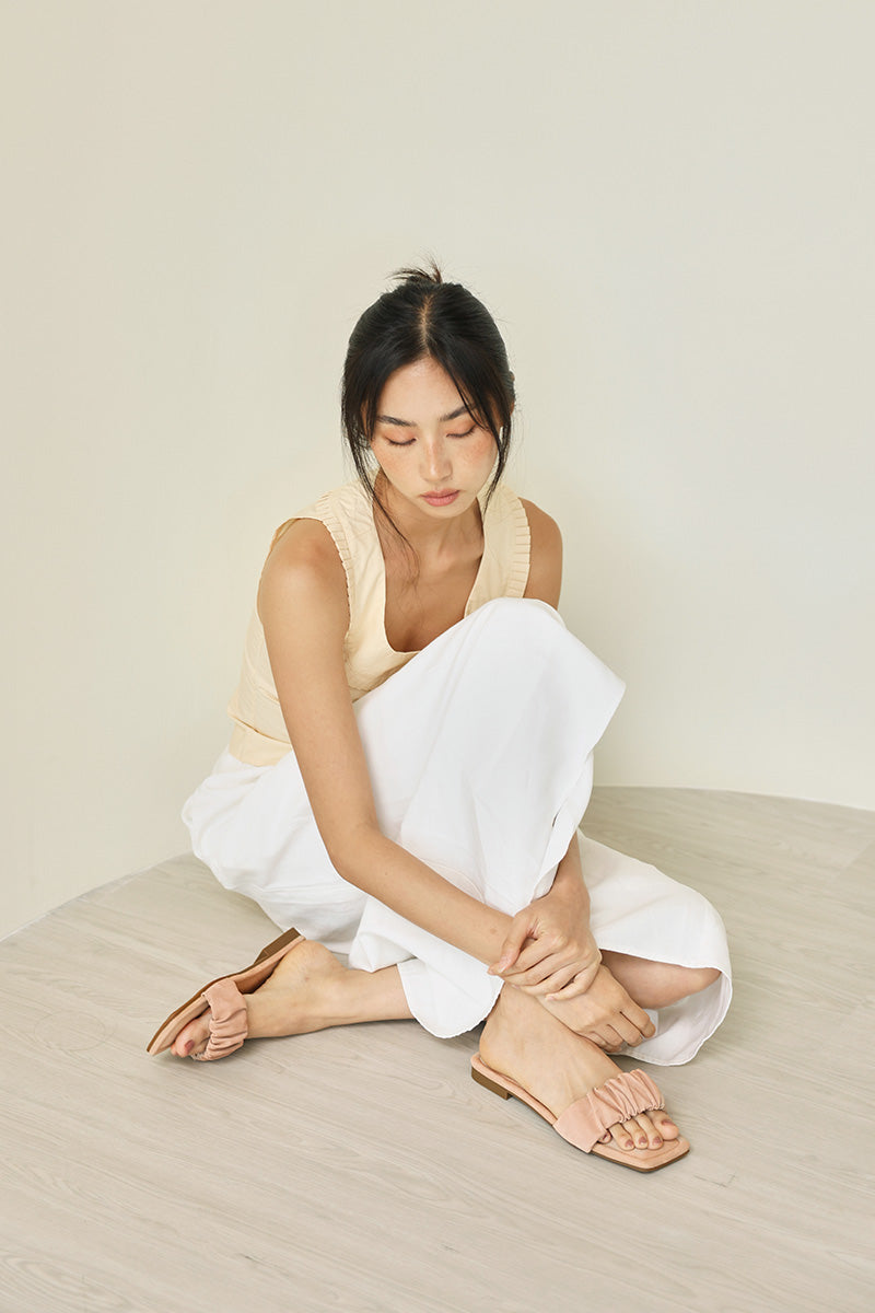 Winslet Ruching Sliders in Nude Waterproof Satin